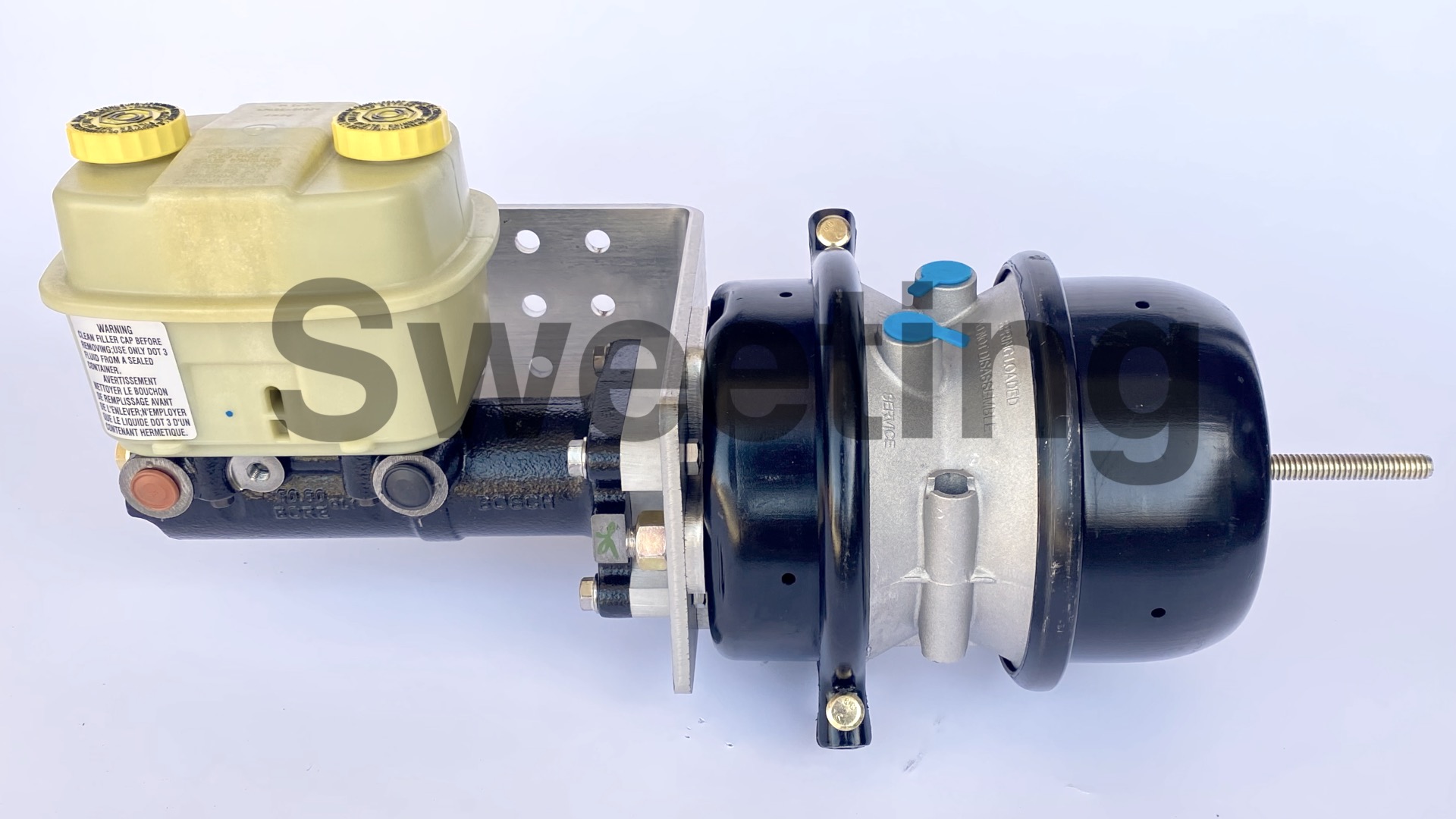 It operates off of 120-150 pounds of air pressure, which is much higher than the 15-20 pounds of vacuum that vacuum brake setups use (if the engine is producing enough, or any, vacuum), and is more serviceable than Air-Pack systems that are no longer generally used. We also build a conversion for the Air-Pack to the Bosch Hydro-Max® that has a backup motor that assists in stopping if your engine dies, which is a great feature, the Air-Hydraulic likewise will have 10-20 or more power assisted stops in reserve in the air tank if the engine dies, and the air compressor will continue to produce more if the battery still provides electricity. More air tanks, compressors, dryers, and other air brake accessories can be added in for increased redundancy just as with standard air brake systems.