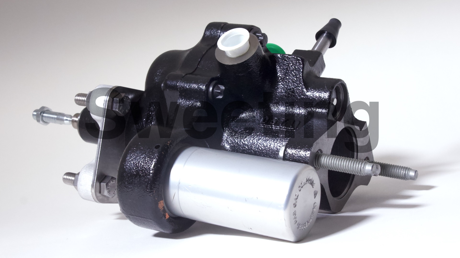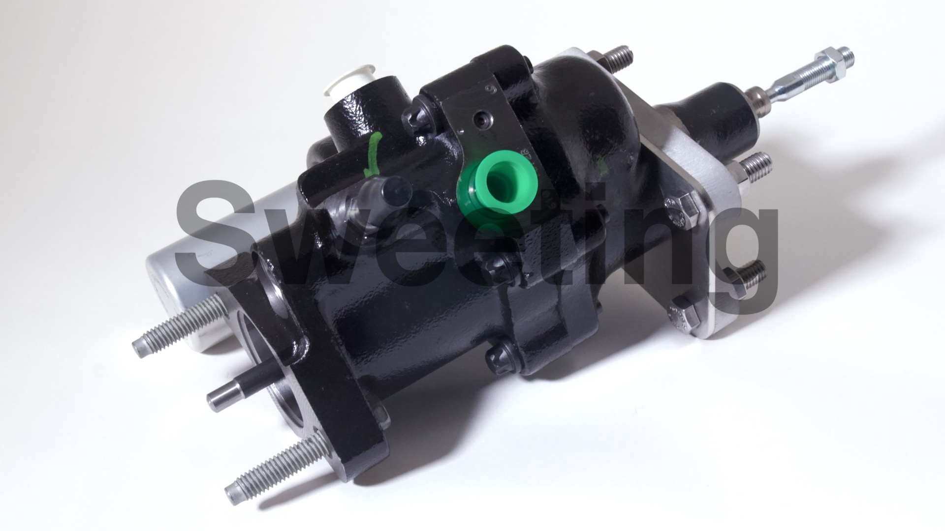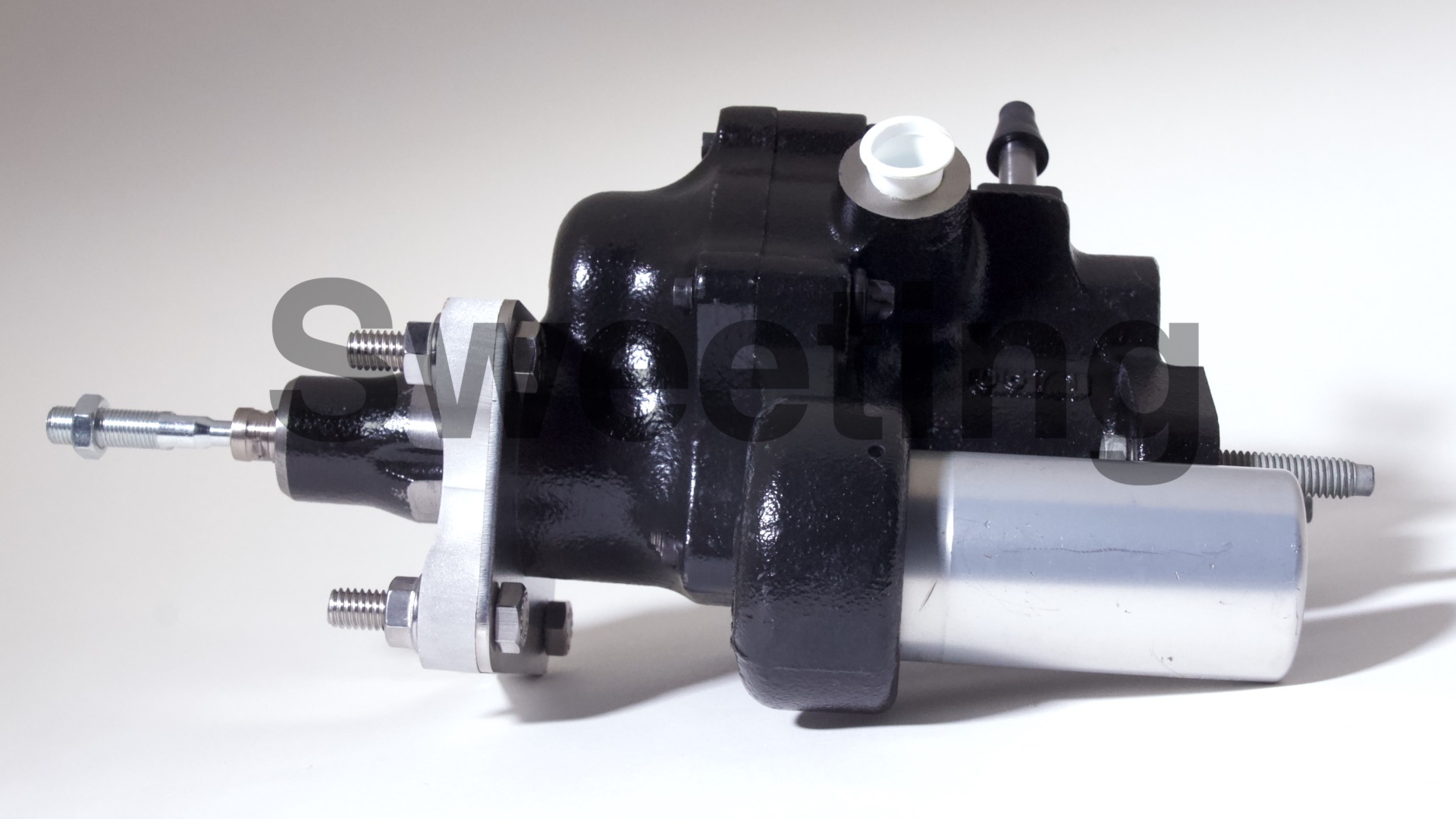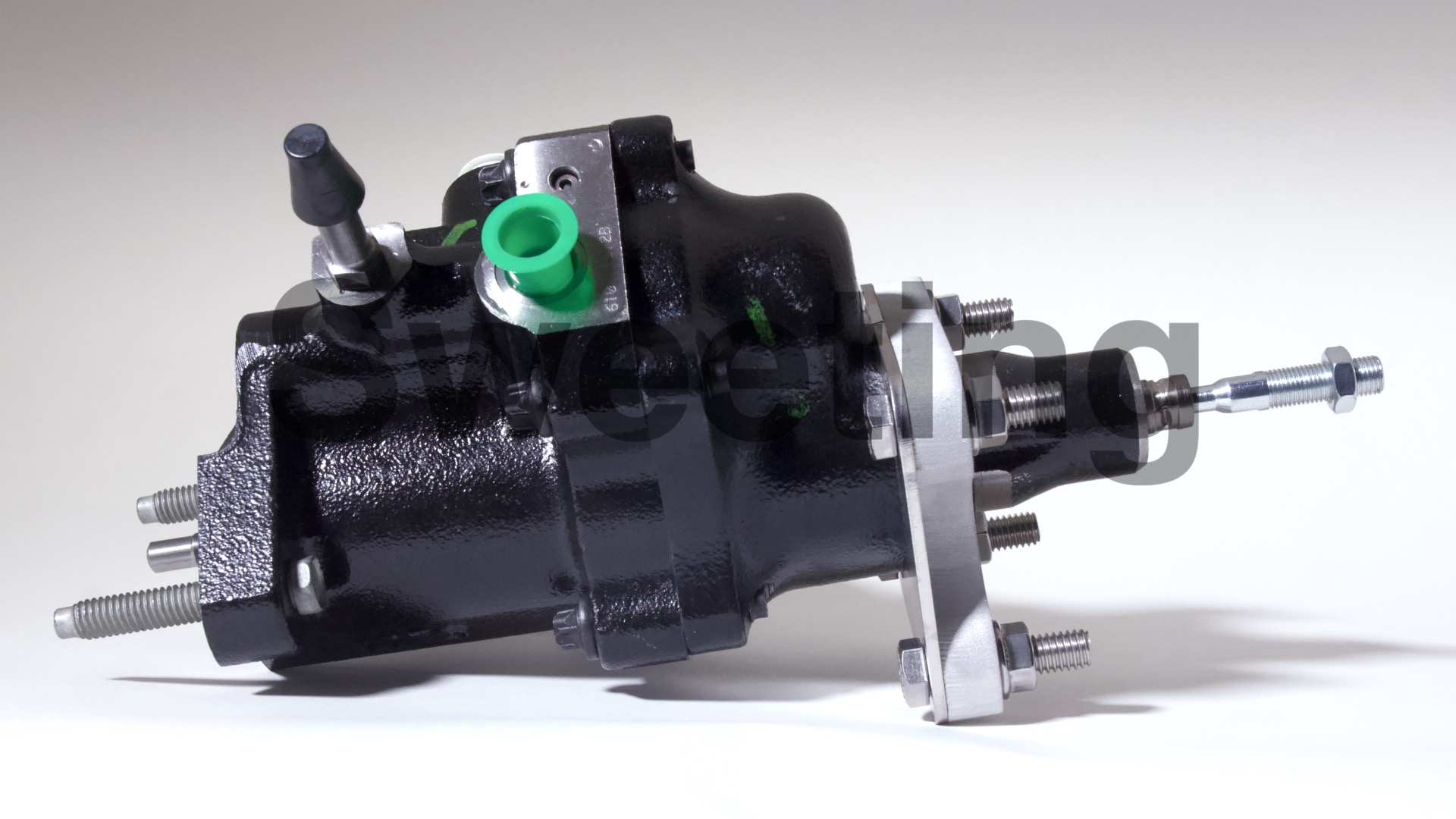The Hydro-Boost is smaller in diameter than vacuum boosters, being about the dimensions of an iron master cylinder, it mates to the firewall/brake pedal and the master cylinder the same way a vacuum booster does, and it fits anywhere a vacuum booster will, as well as many place a vacuum booster won't. The aluminum canister on the side is the accumulator, which stores pressure in case your engine dies to provide you with some braking and steering assist to help you come to a safe stop.