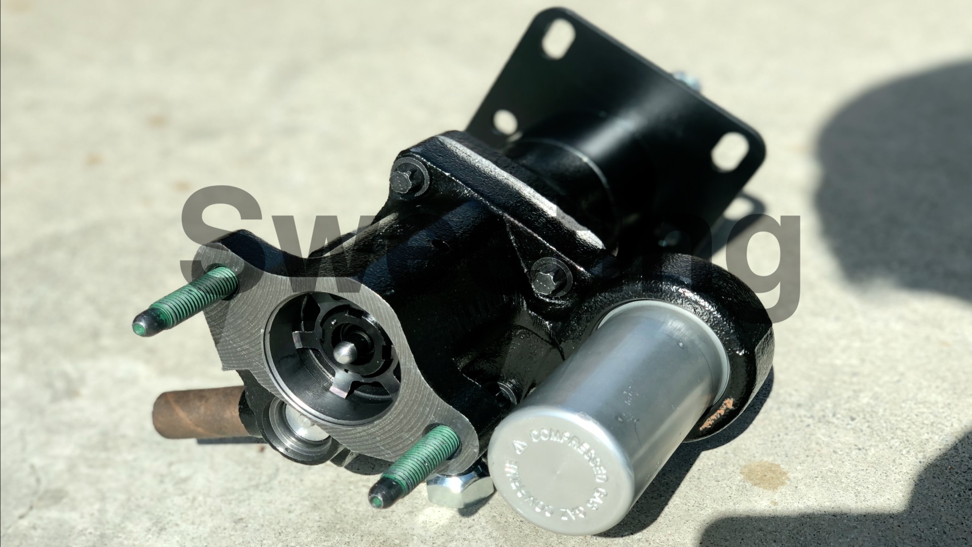 The Hydro-Boost is smaller in diameter than vacuum boosters, being about the dimensions of an iron master cylinder, it mates to the firewall/brake pedal and the master cylinder the same way a vacuum booster does, and it fits anywhere a vacuum booster will, as well as many place a vacuum booster won't. The aluminum canister on the side is the accumulator, which stores pressure in case your engine dies to provide you with some braking and steering assist to help you come to a safe stop.
