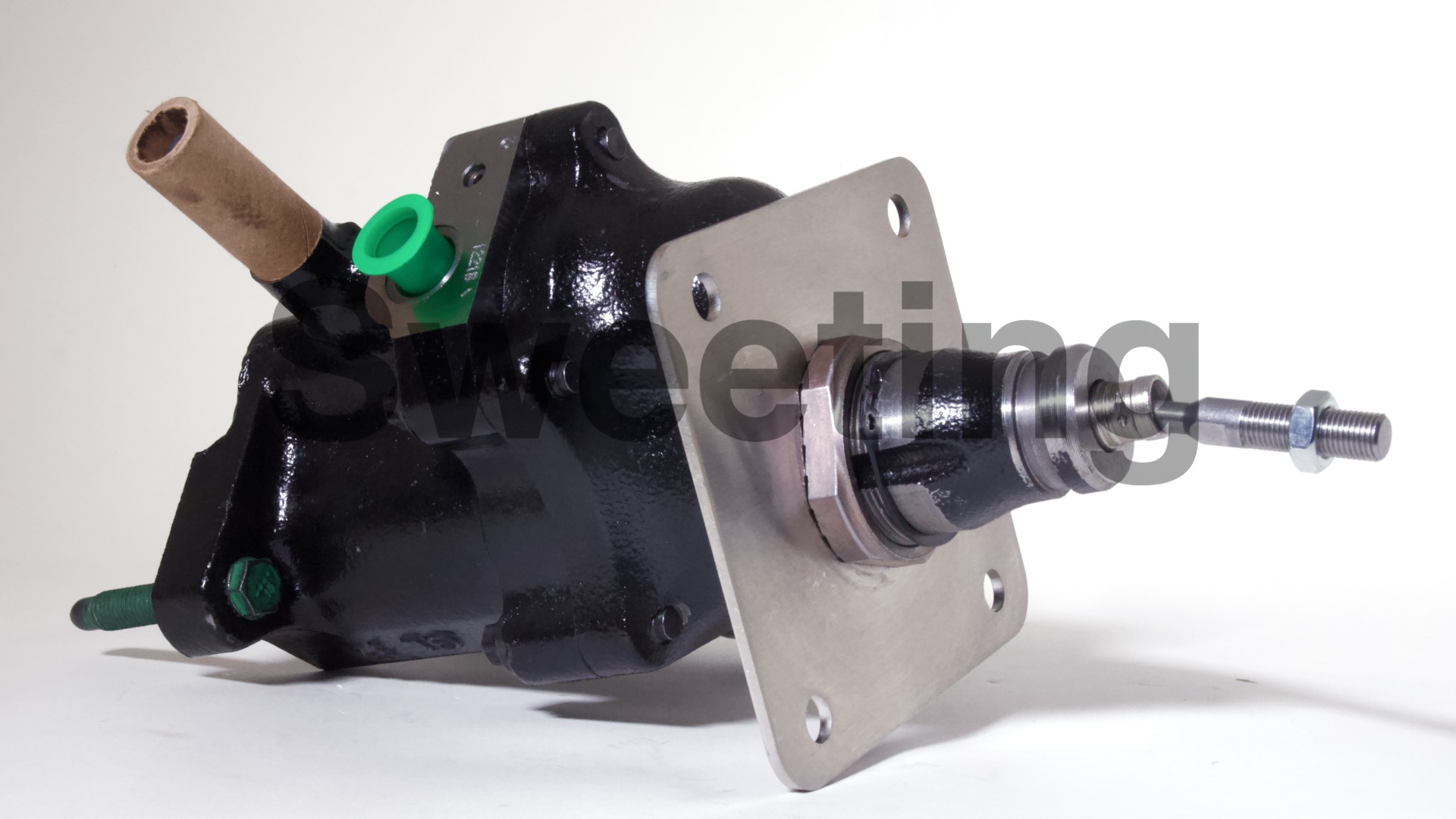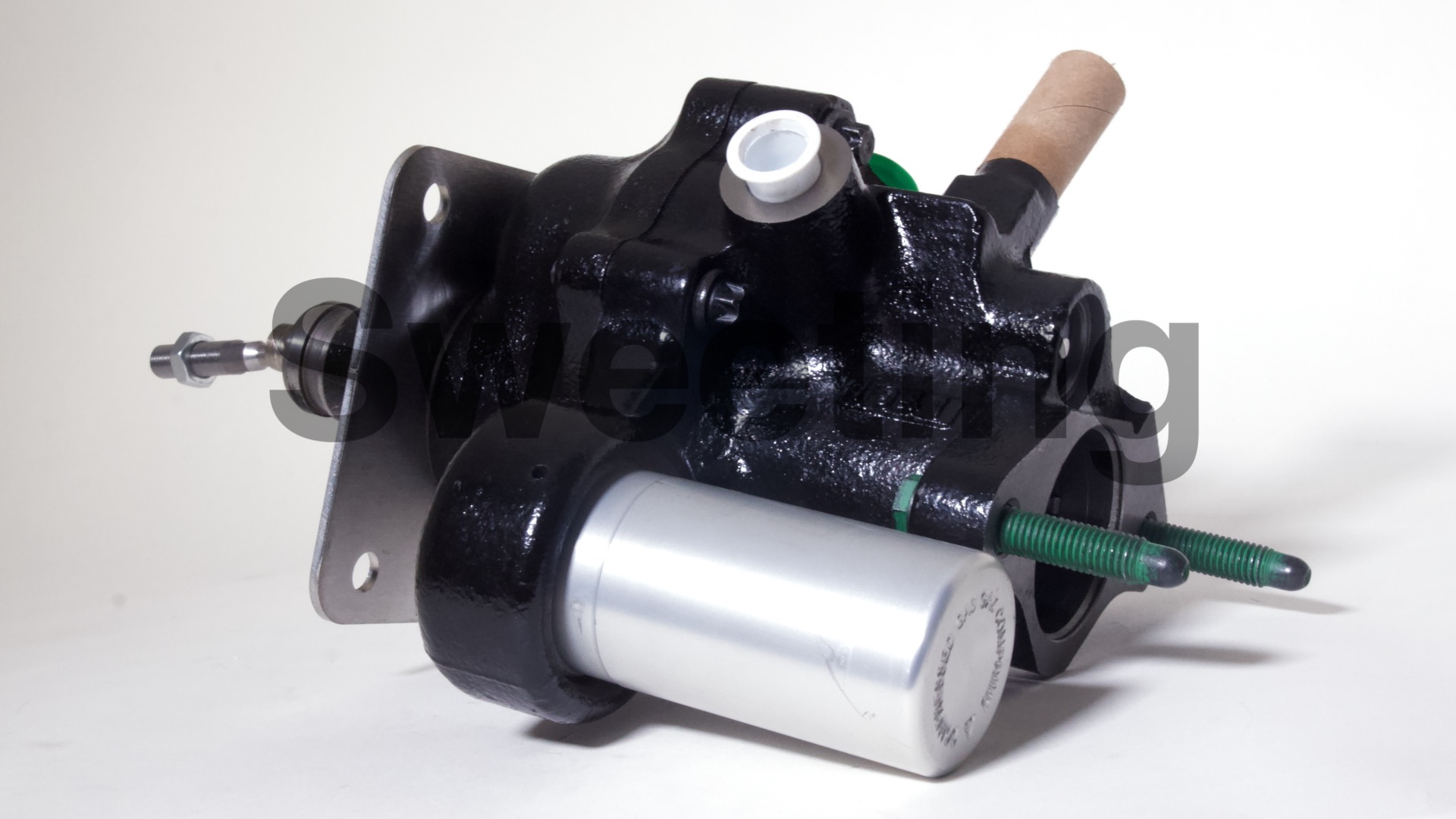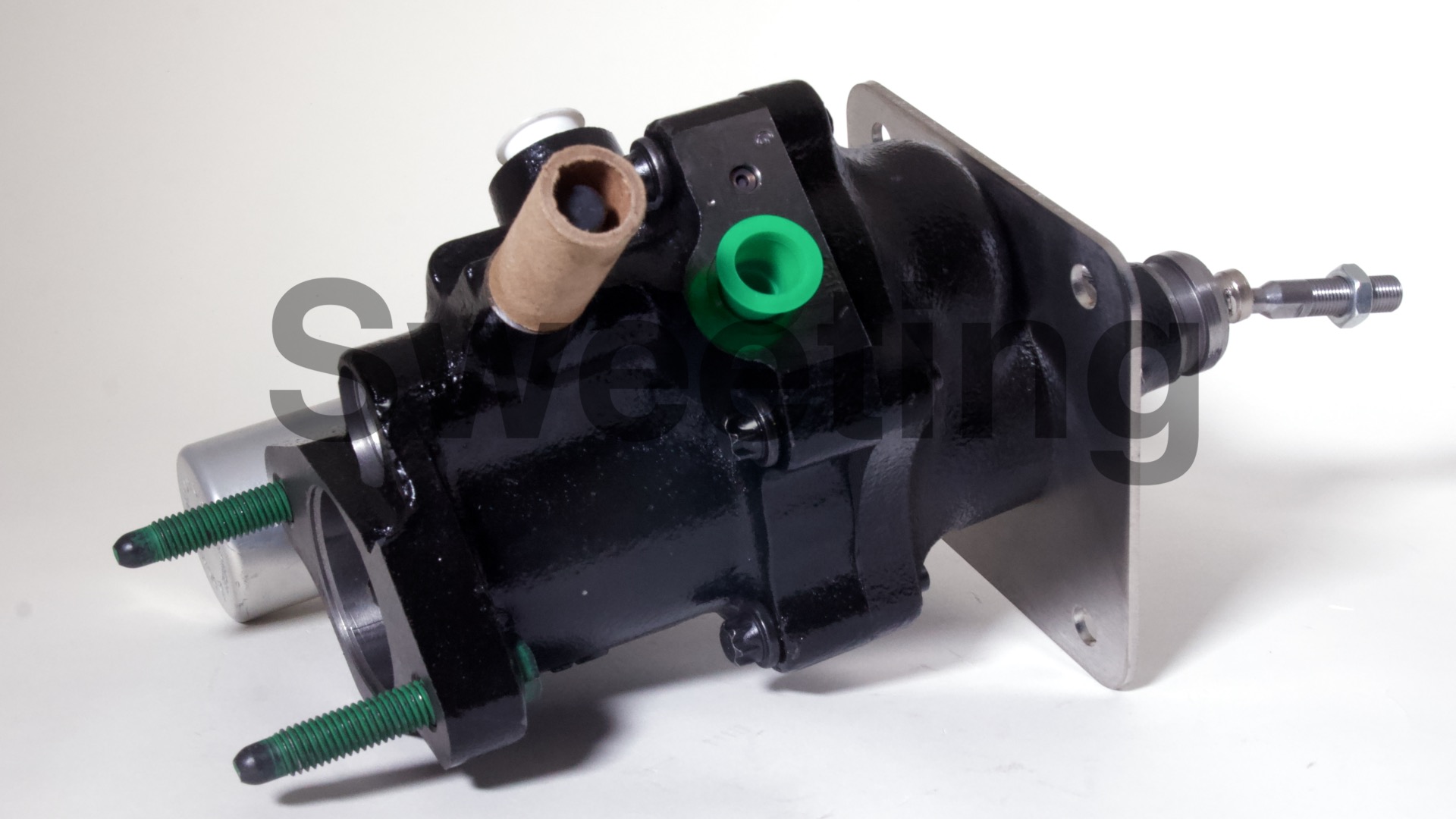 The Hydro-Boost is smaller in diameter than vacuum boosters, being about the dimensions of an iron master cylinder, it mates to the firewall/brake pedal and the master cylinder the same way a vacuum booster does, and it fits anywhere a vacuum booster will, as well as many place a vacuum booster won't. The aluminum canister on the side is the accumulator, which stores pressure in case your engine dies to provide you with some braking and steering assist to help you come to a safe stop.